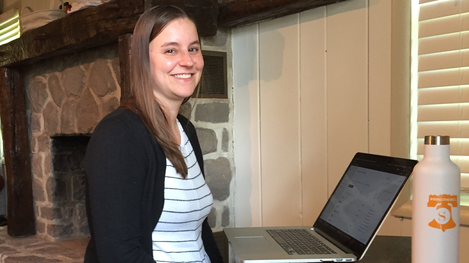 Kelly Mullen, Director of Production at Stream Companies, working from home.